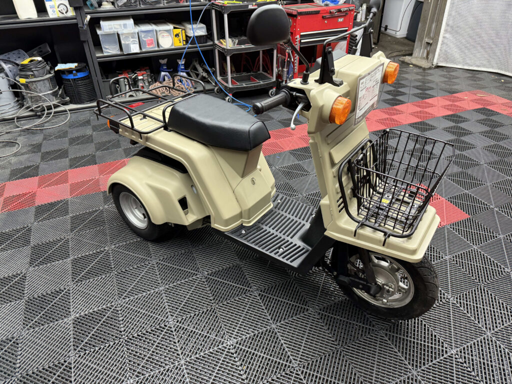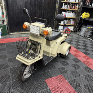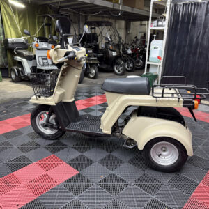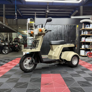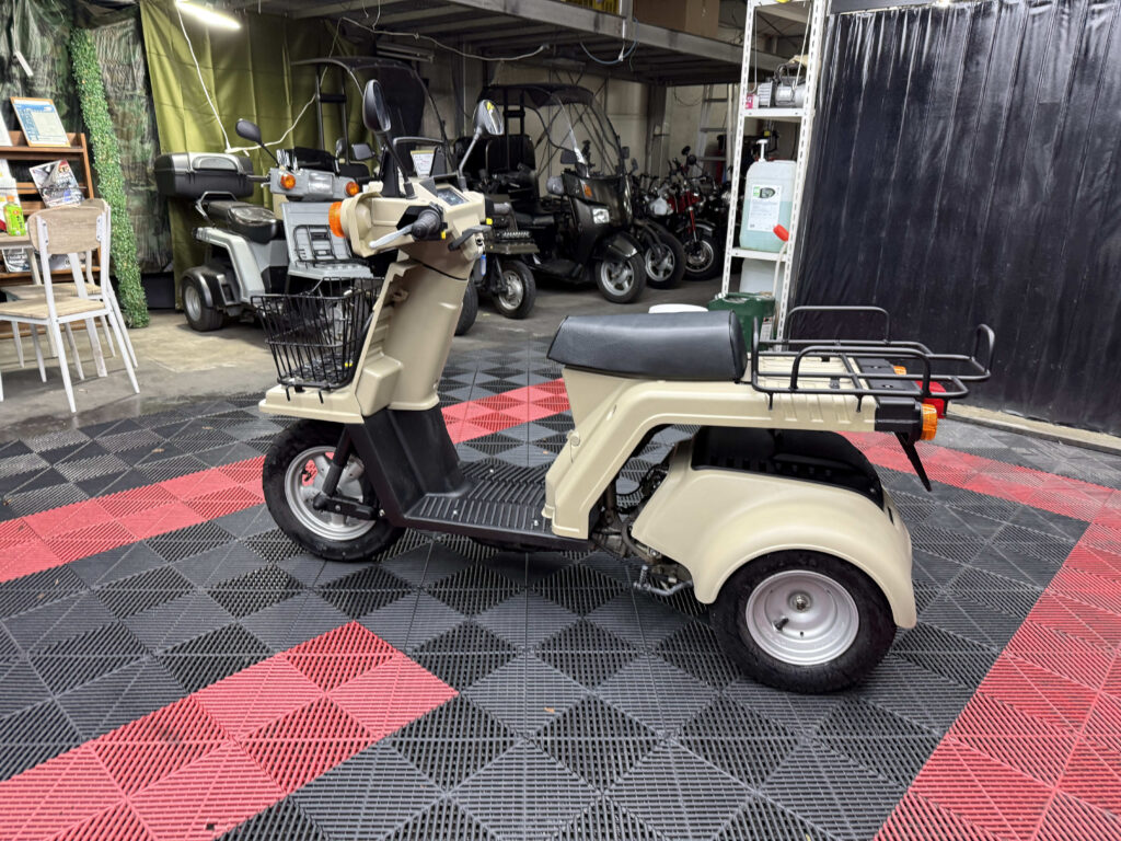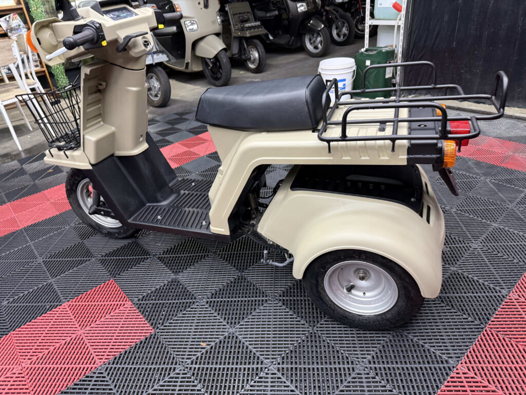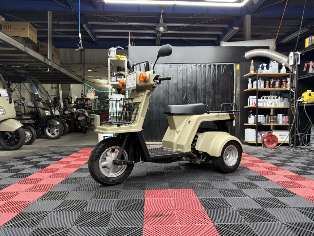 使い勝手の高さで人気のジャイロXに、落ち着いたベージュ系カラーの新塗装を施した綺麗な一台が入荷しました。外装は各パネルを丁寧にリペイントしており、ツヤも良く統一感のある仕上がり。ビジネス用途にも日常使いにも馴染む実用的なスタイルです。