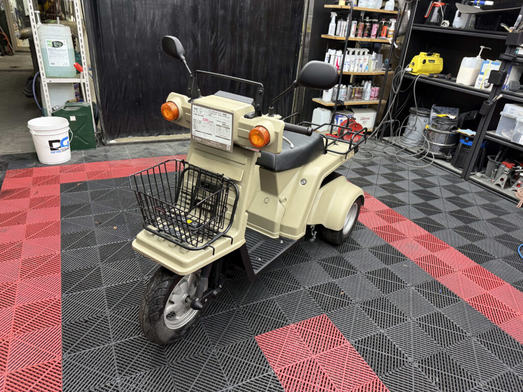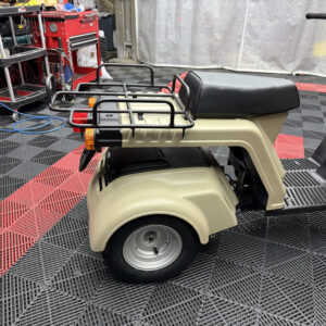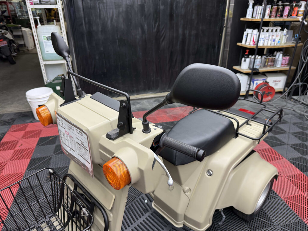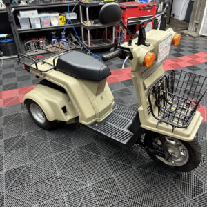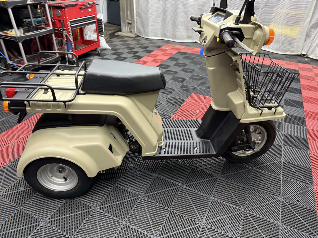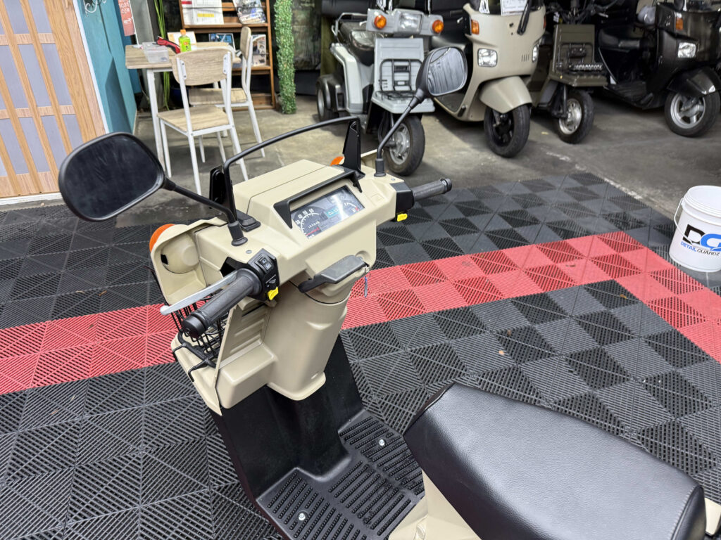 使い勝手の高さで人気のジャイロXに、落ち着いたベージュ系カラーの新塗装を施した綺麗な一台が入荷しました。外装は各パネルを丁寧にリペイントしており、ツヤも良く統一感のある仕上がり。ビジネス用途にも日常使いにも馴染む実用的なスタイルです。