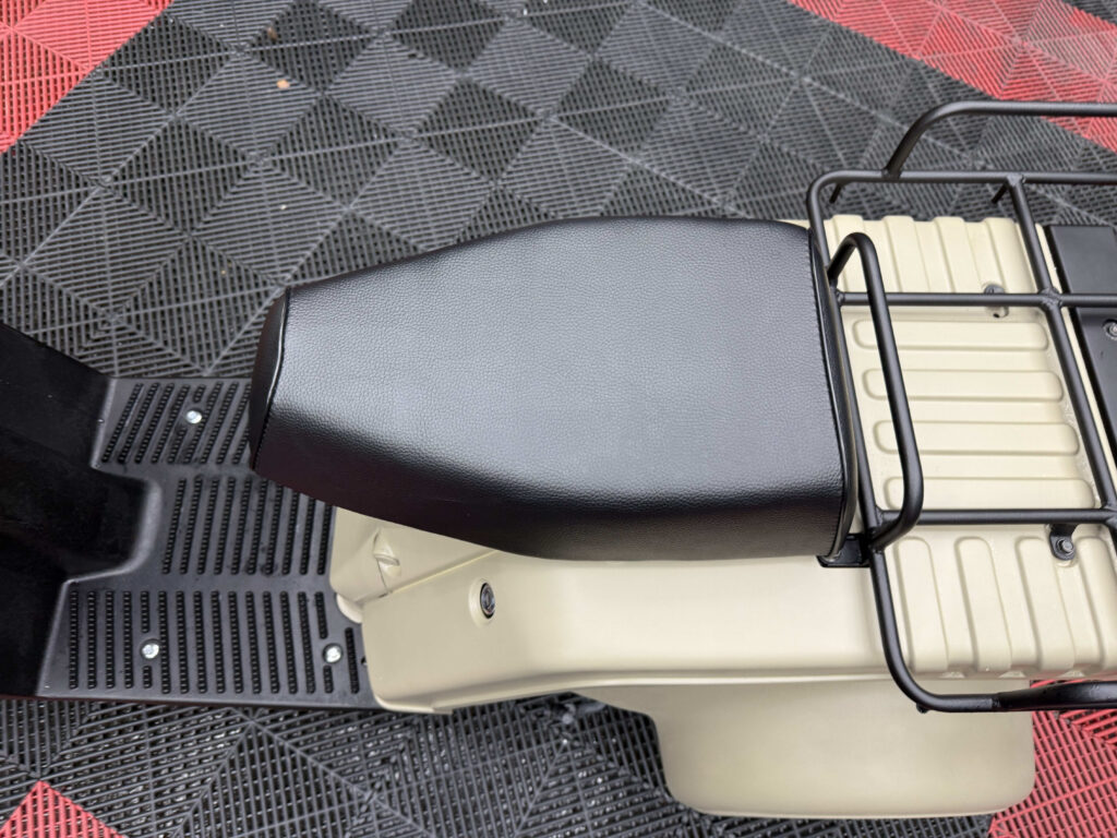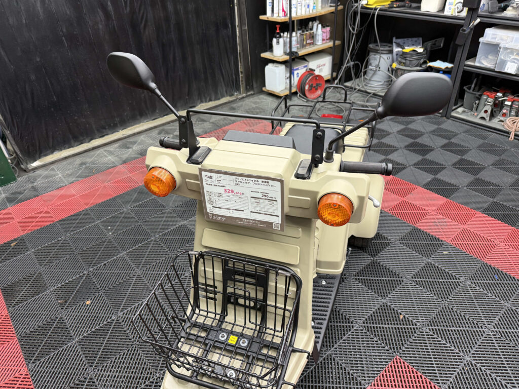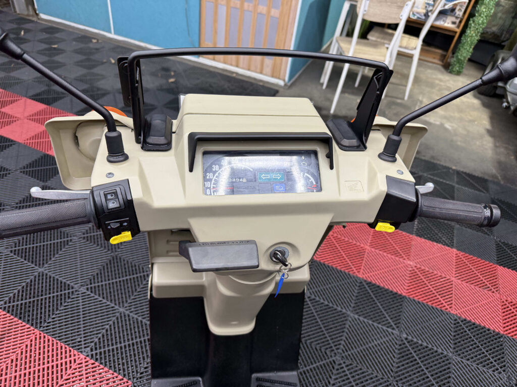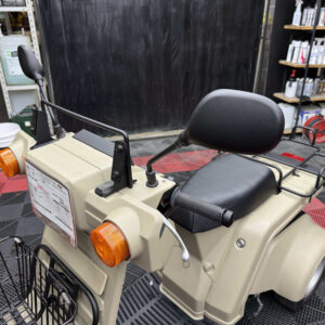 フロントには大容量バスケット、リアにはワイドキャリアを搭載し積載性は抜群。荷物運搬やデリバリーなど幅広い用途に対応できます。メーター・レバー・スイッチ周りも良好で、シートも張り替え済みのため座り心地も快適。4サイクルエンジンは静かで扱いやすく、通勤・業務・買い物に最適です。