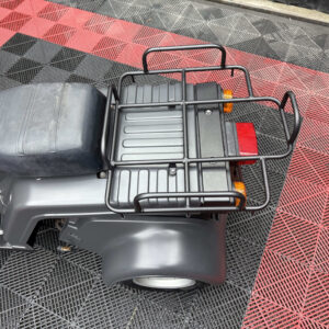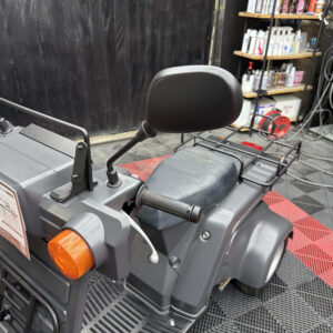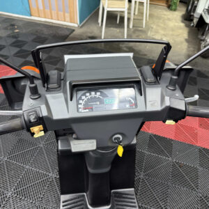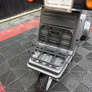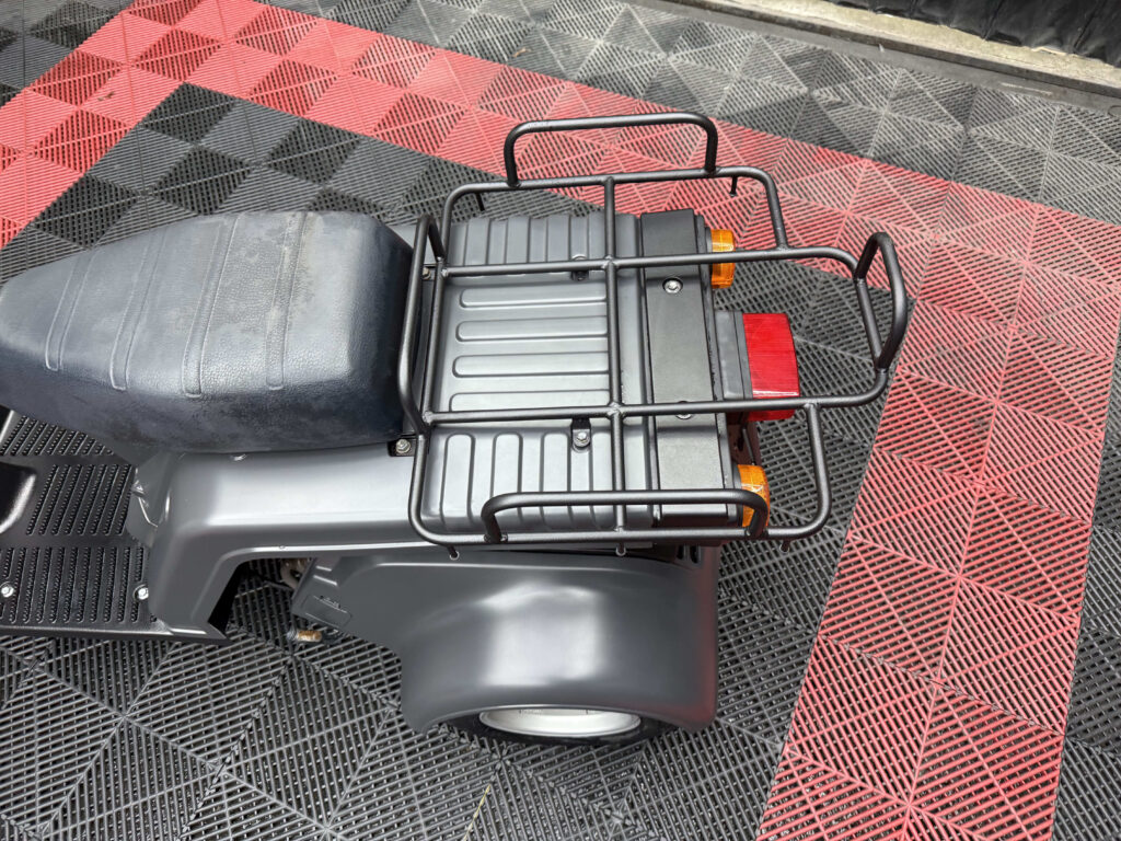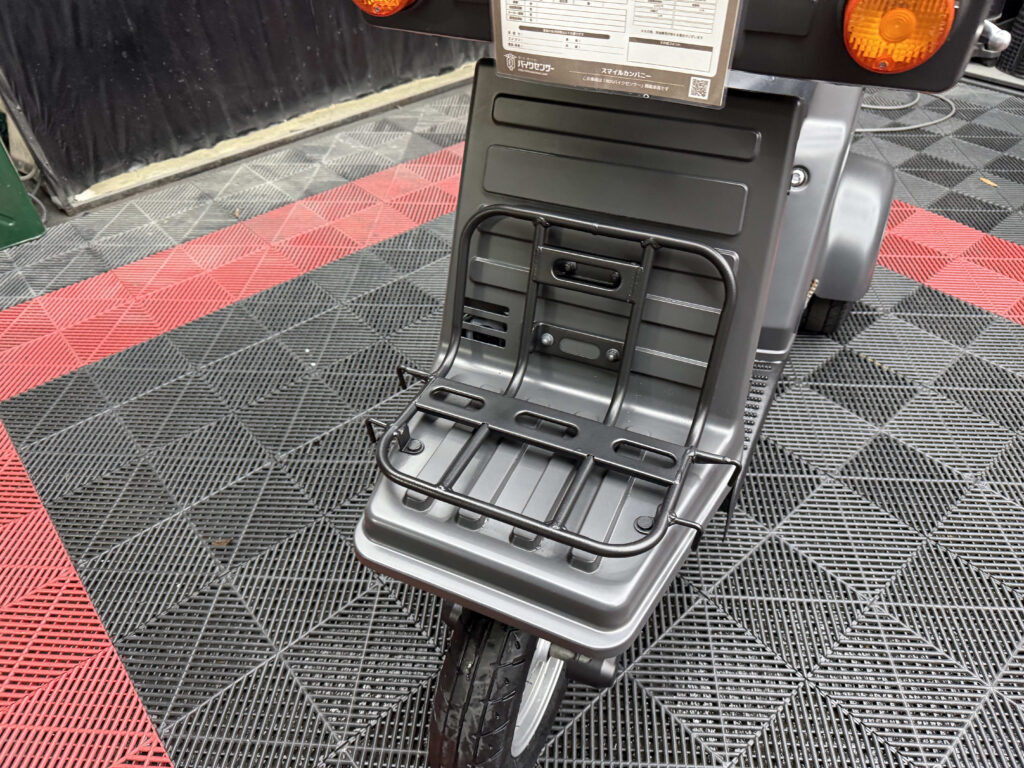 積載面では、フロントキャリア+ワイドリアキャリアを搭載しており、荷物の多い用途にしっかり対応。大きめの荷物も積みやすく、ビジネスユースに非常に人気の仕様です。シートも張り良く、メーター・ライト・ウインカーなども正常に作動しています。