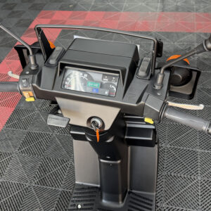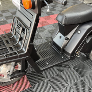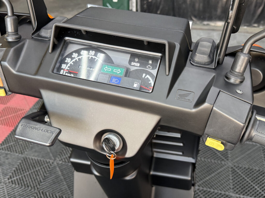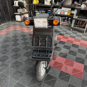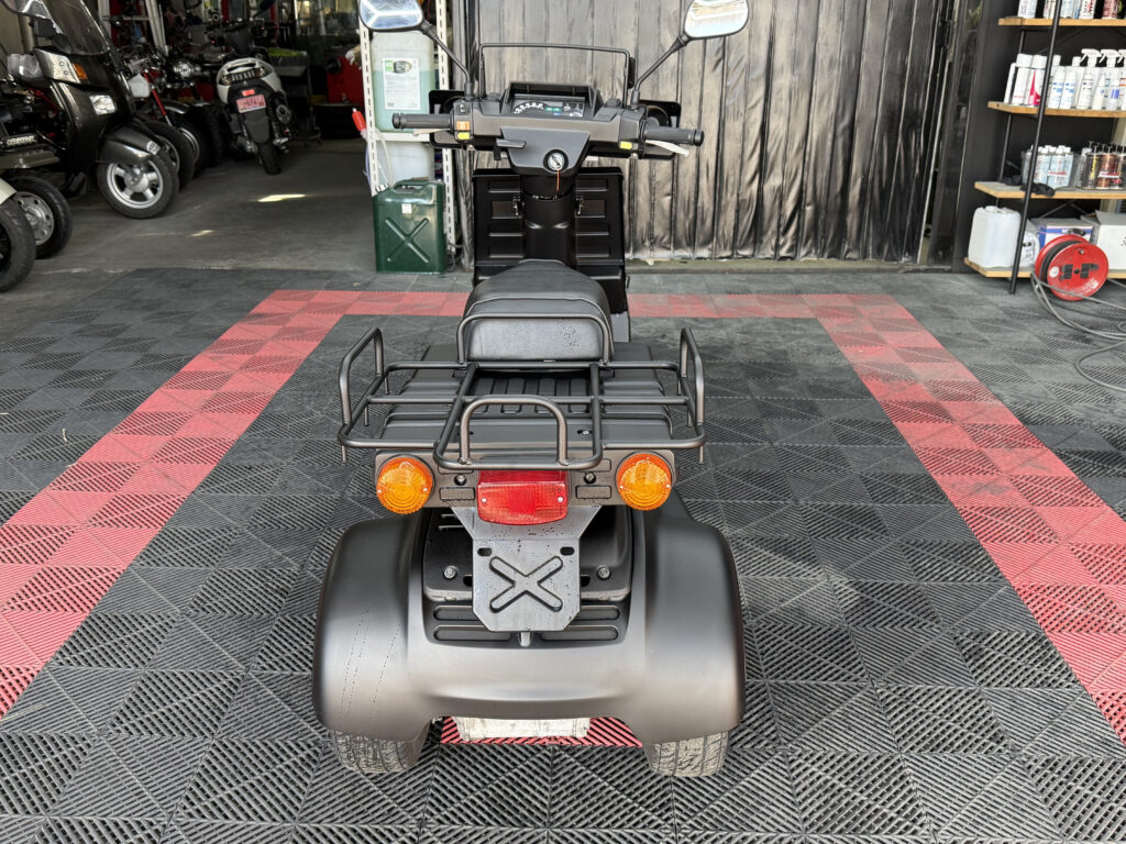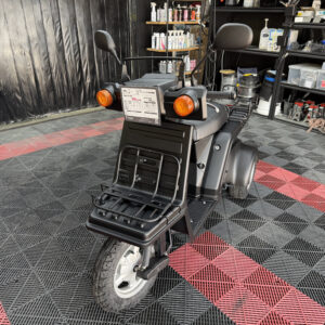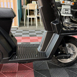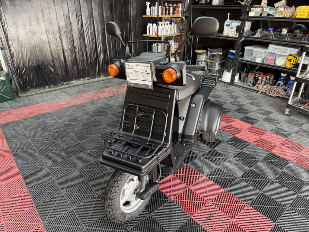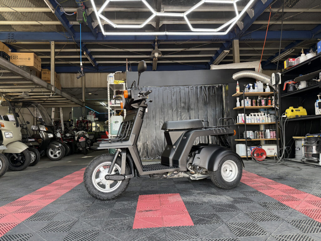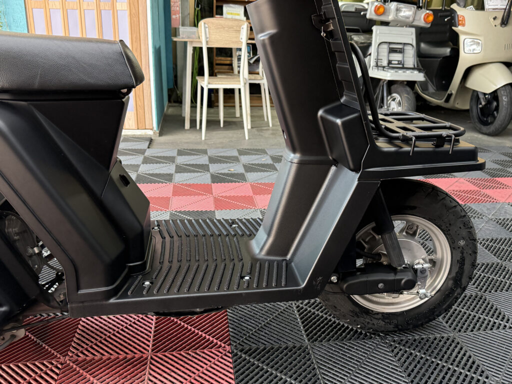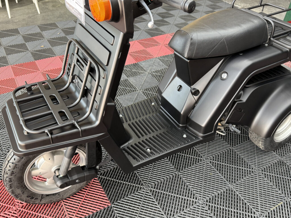 マットブラックで統一された外装は、当店で新しく塗装しており、見た目に清潔感があります。樹脂パーツやハンドル周り、フロアも状態良好。エンジンの吹け上がりもスムーズで、業務利用にも安心です。