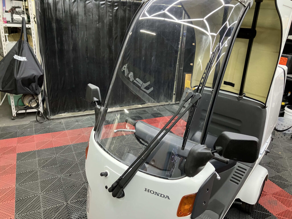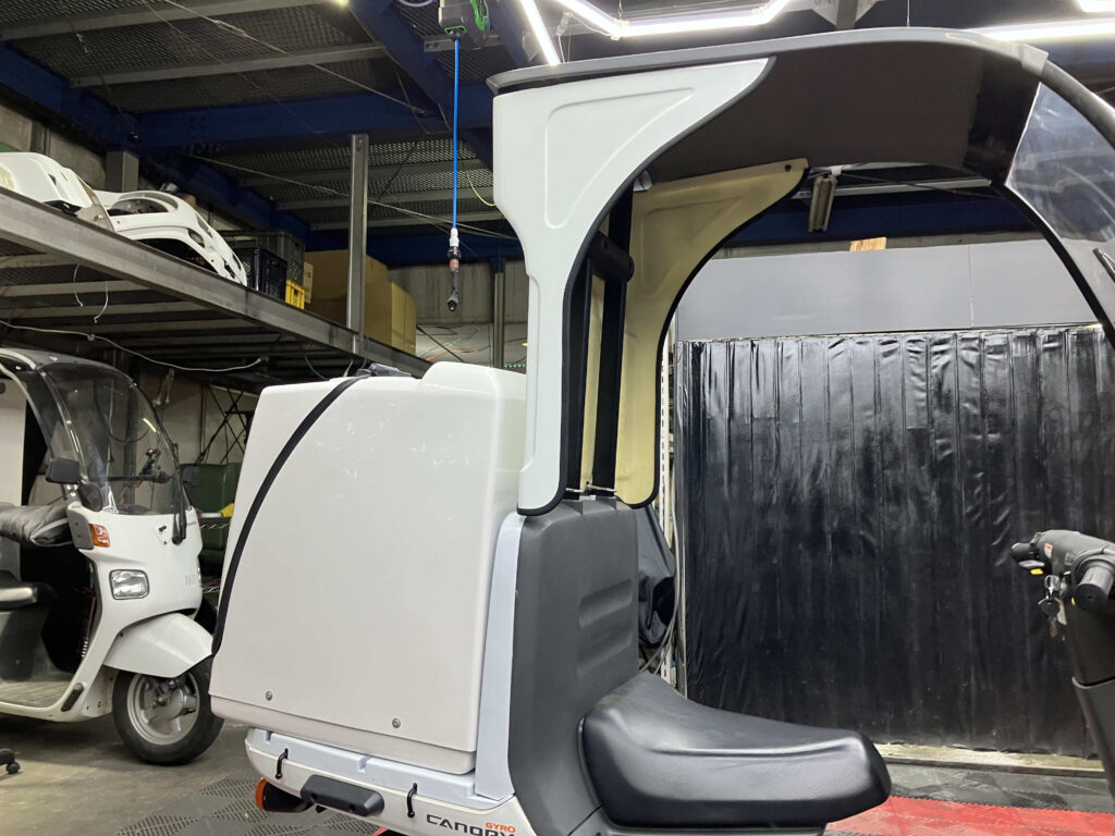 作業中はジャイロキャノピー(ミニカー・原付)代車の貸出も可能です(※当店購入車両・要予約)。