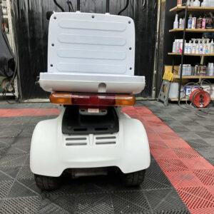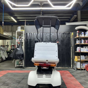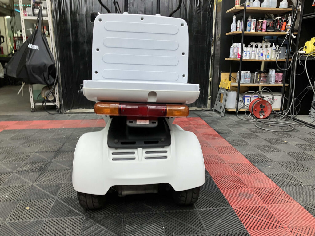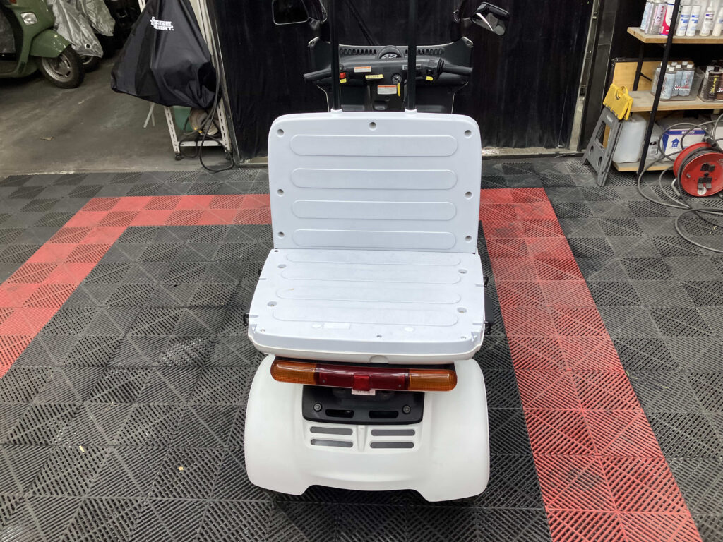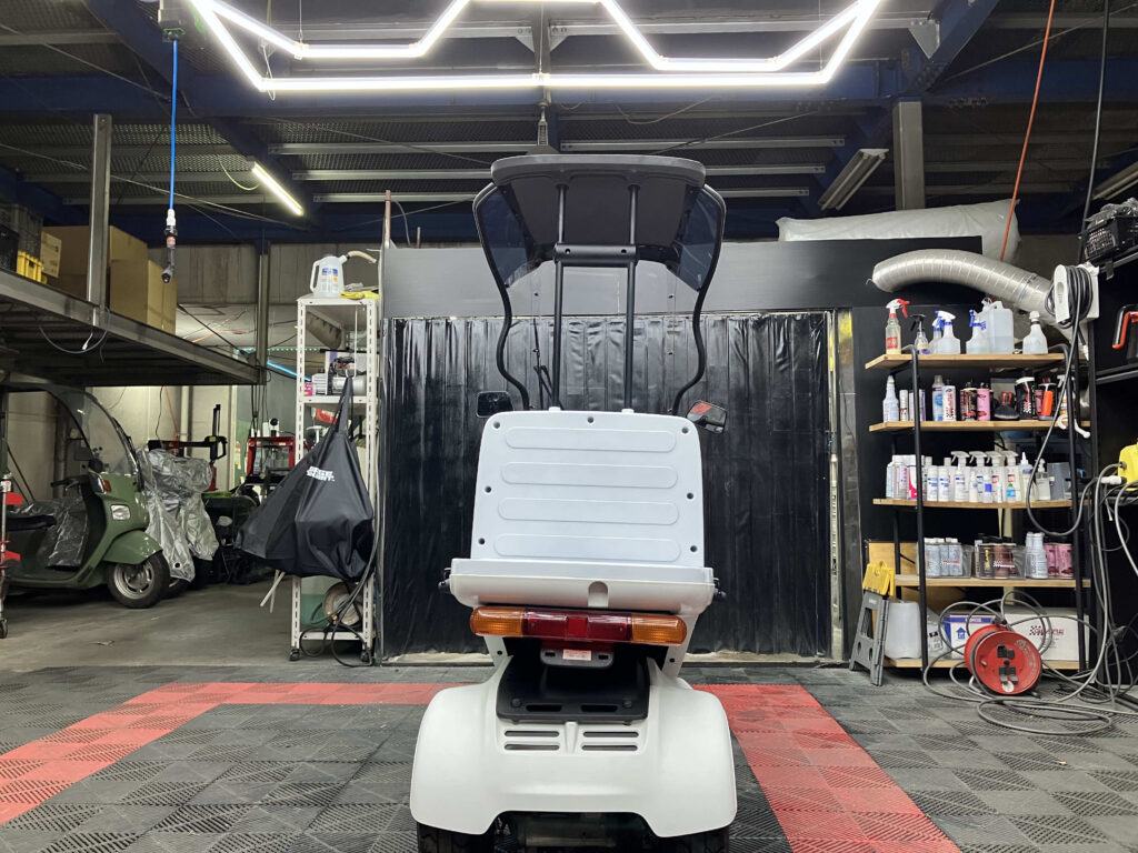 屋根付き三輪構造で、雨天時や長時間の使用でも疲れにくく、