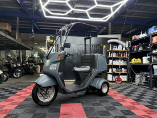 ジャイロキャノピー 4サイクル最終型/ミニカー登録/新塗装仕上げ #01 車両動画はこちら 人気の4スト最終型キャノピーをベースに、外装を新たにオールペイントした特別仕様の1台が入荷しました。ミニカー登録済みなので、ヘルメット不要・二段階右折不要で快適に走れるのが大きな魅力です。 外装はグレー系の落ち着いた新塗装で、フロントからリアフェンダー、屋根周りまでムラなく美しく仕上がっています。スクリー… |